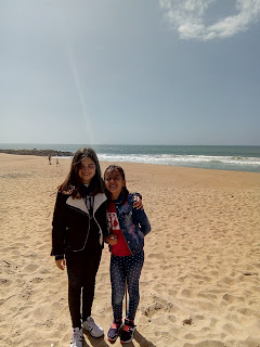 O tempo melhorou bastante. Continua cinzento mas o vento quase que não se faz sentir. O mar continua revolto mas com a maré baixa dá para passear pela marginal.